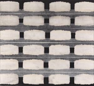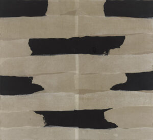 - Anschließend collagiere ich die Tuschepapiere auf Leinwand.